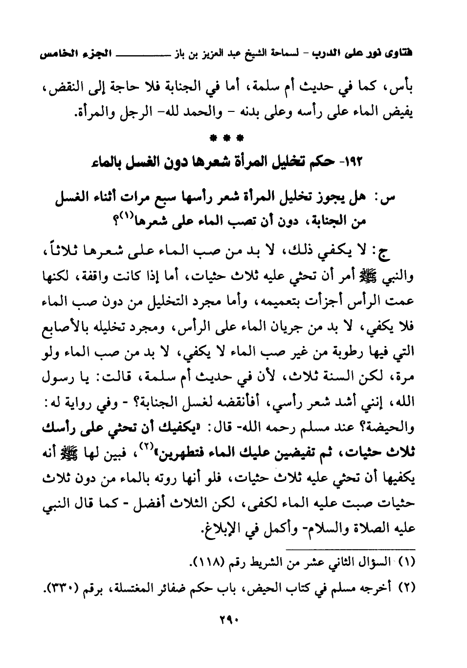 192 - حكم تخليل المرأة شعرها دون الغسل بالماء