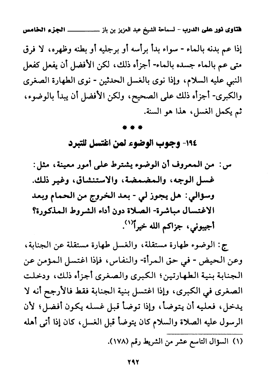194 - وجوب الوضوء لمن اغتسل للتبرد