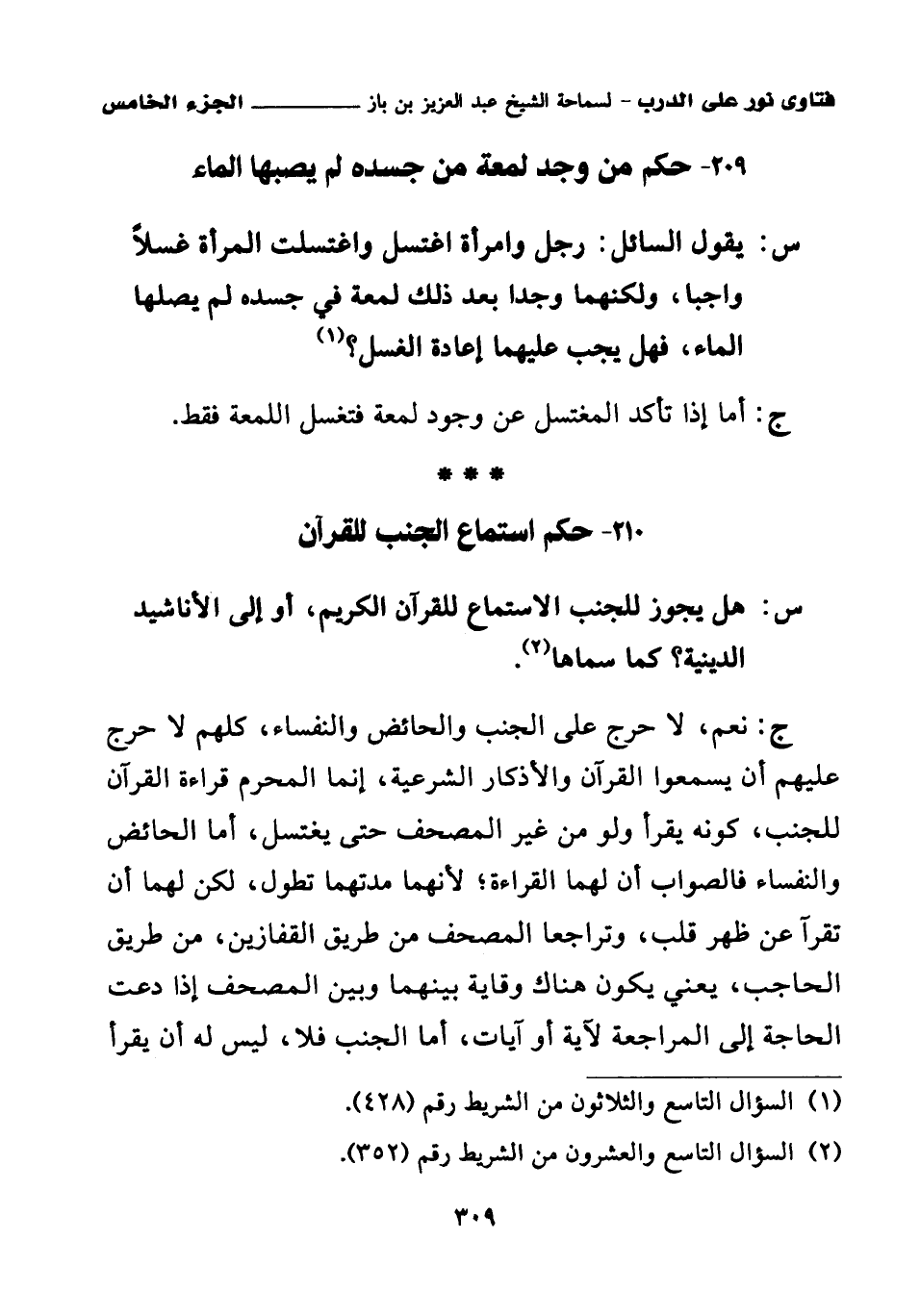 210 - حكم استماع الجنب للقرآن