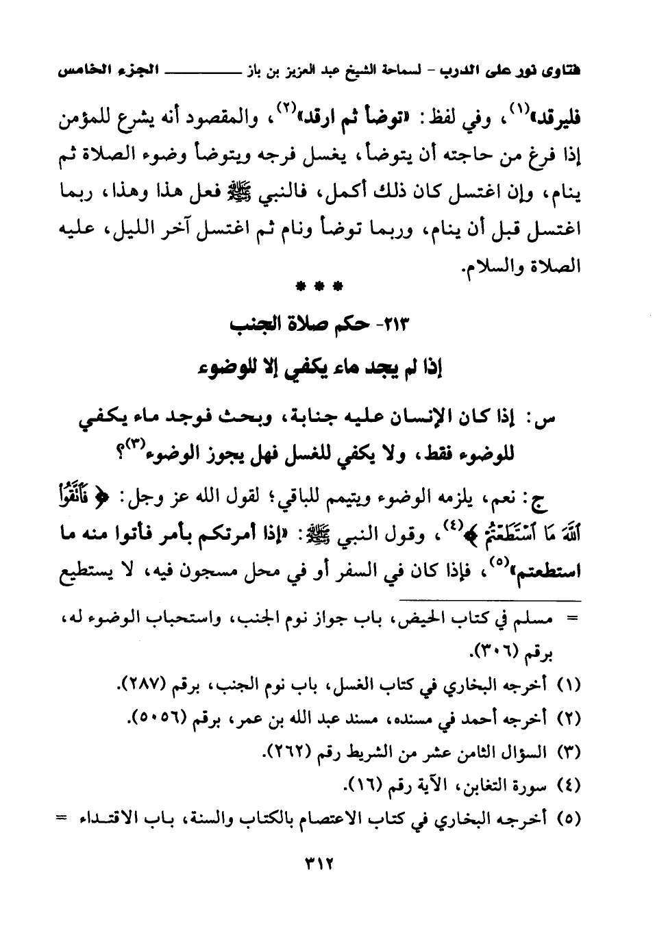 213 - حكم صلاة الجنب إذا لم يجد ماء يكفي إلا للوضوء