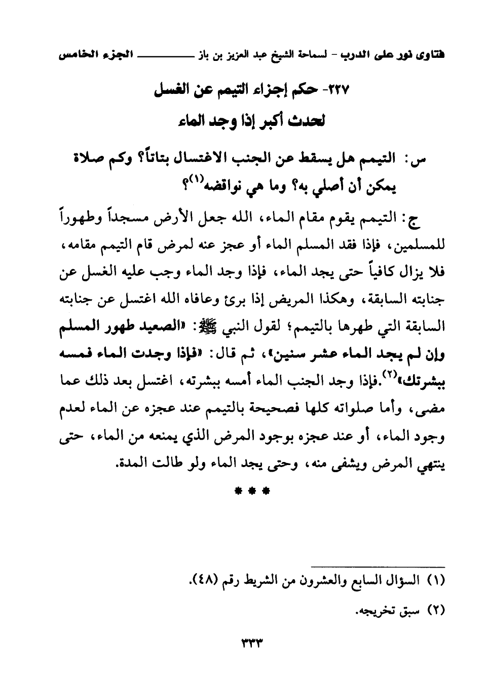 227 - حكم إجزاء التيمم عن الغسل لحدث أكبر إذا وجد الماء