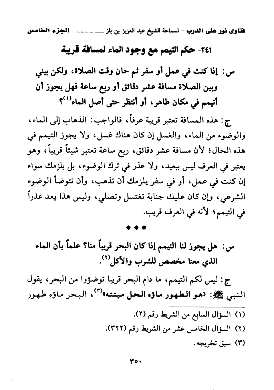 241 - حكم التيمم مع وجود الماء لمسافة قريبة