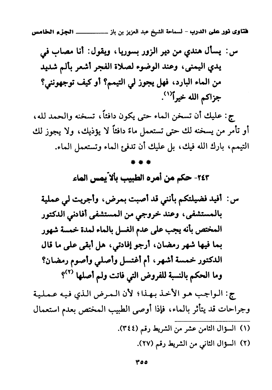 243 - حكم من أمره الطبيب بألا يمس الماء