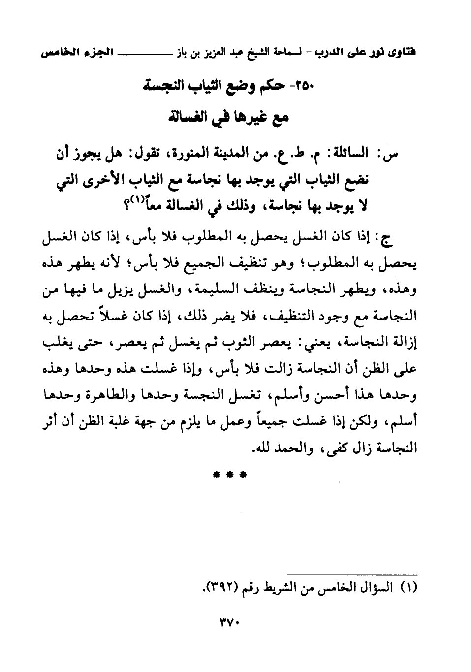 (¬1) السؤال الخامس من الشريط رقم (392).