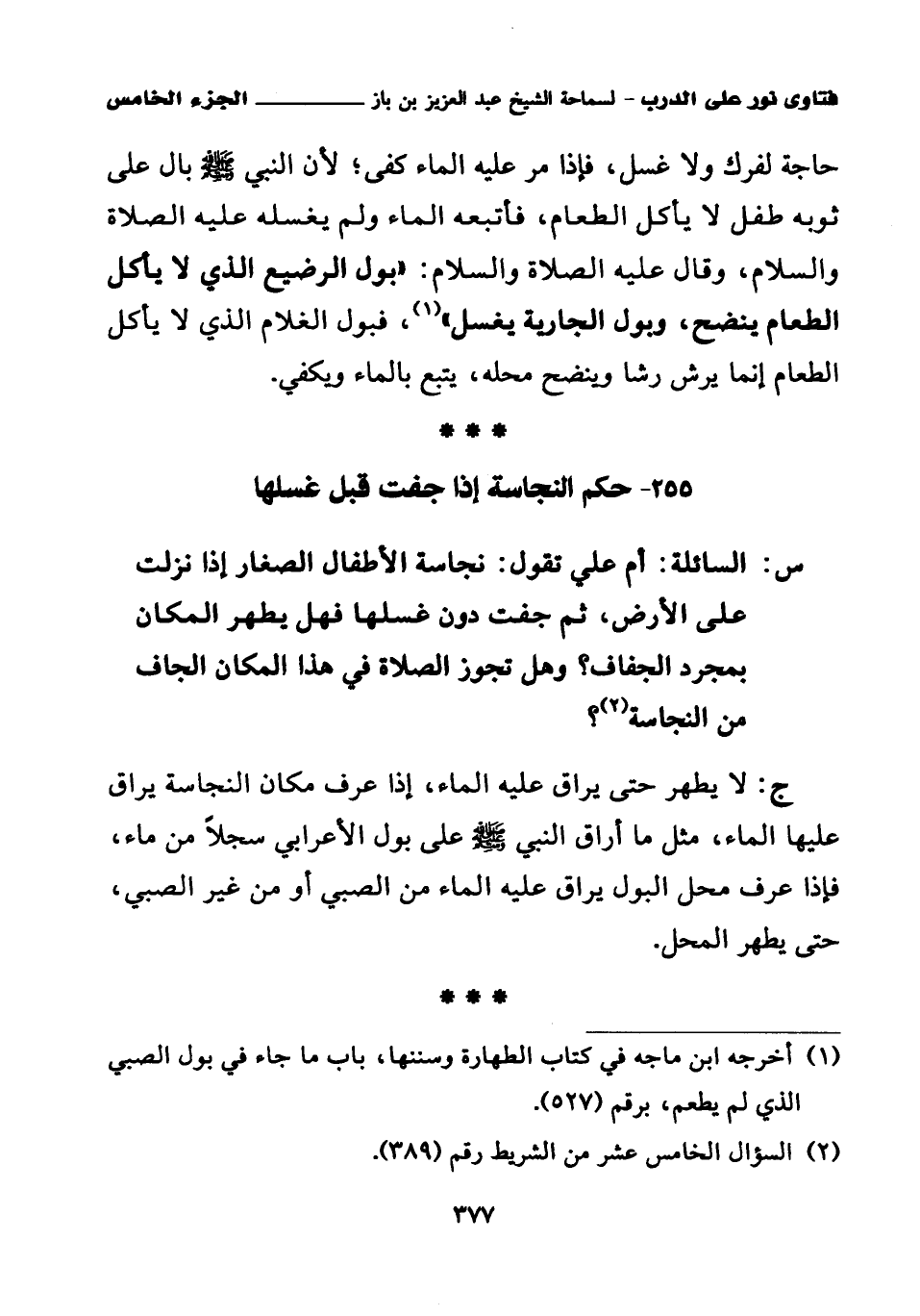 255 - حكم النجاسة إذا جفت قبل غسلها