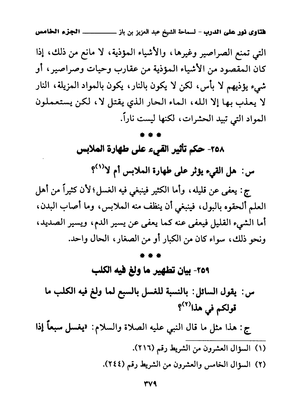 (¬1) السؤال الخامس والعشرون من الشريط رقم (244).