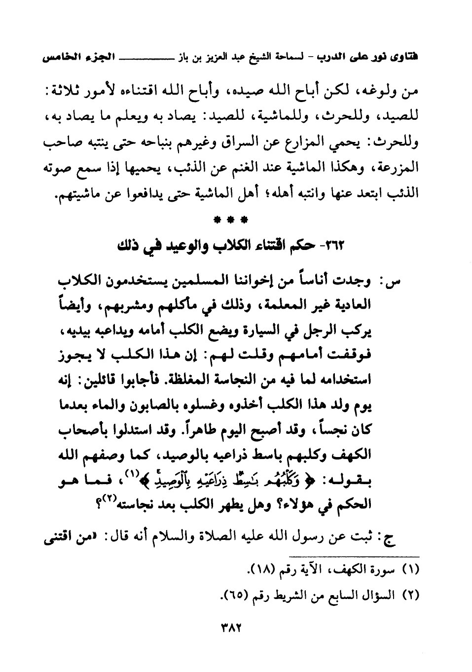 262 - حكم اقتناء الكلاب والوعيد في ذلك