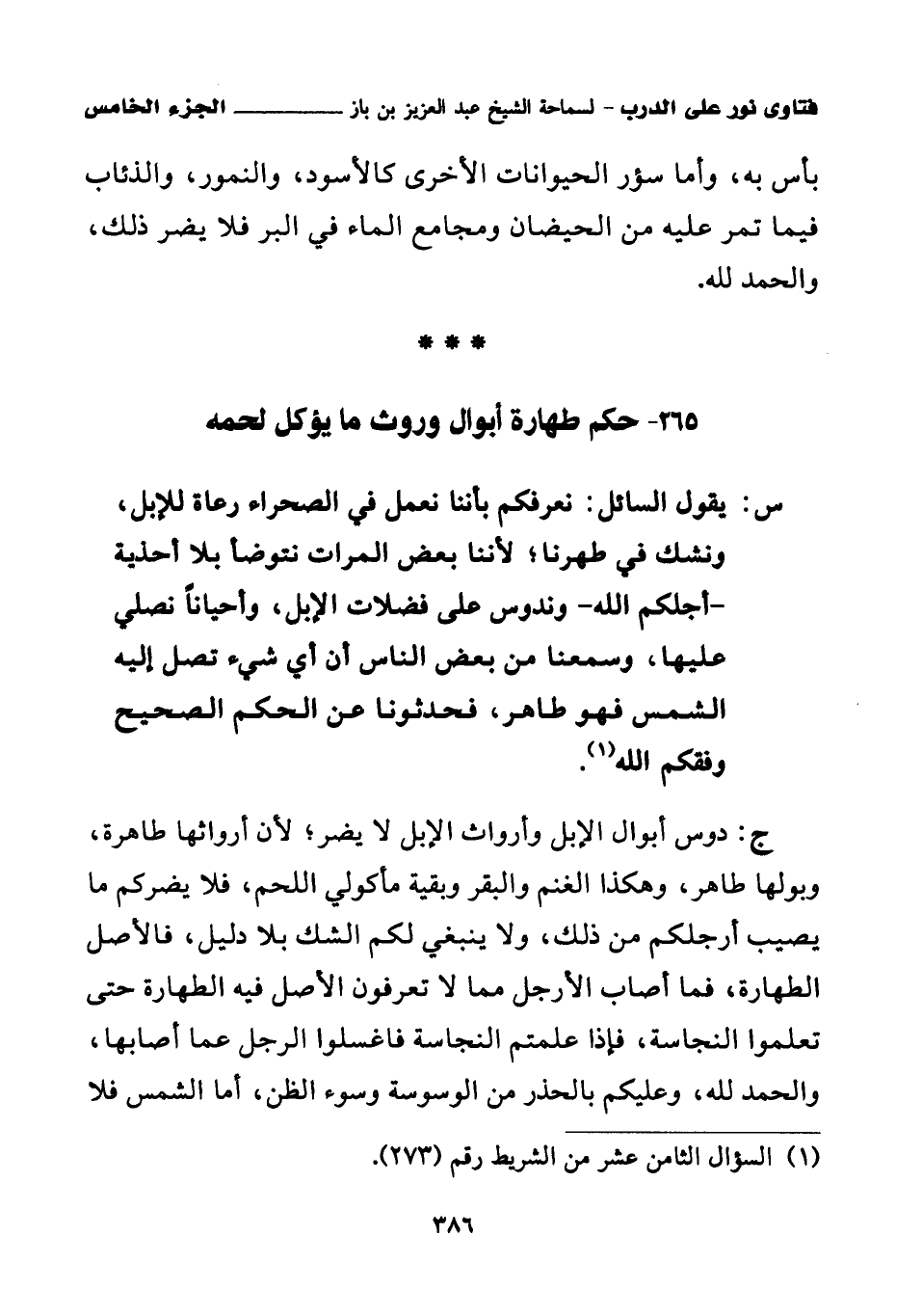 كتاب فتاوى نور على الدرب لابن باز بعناية الشويعر (اسم الجزء: 5)