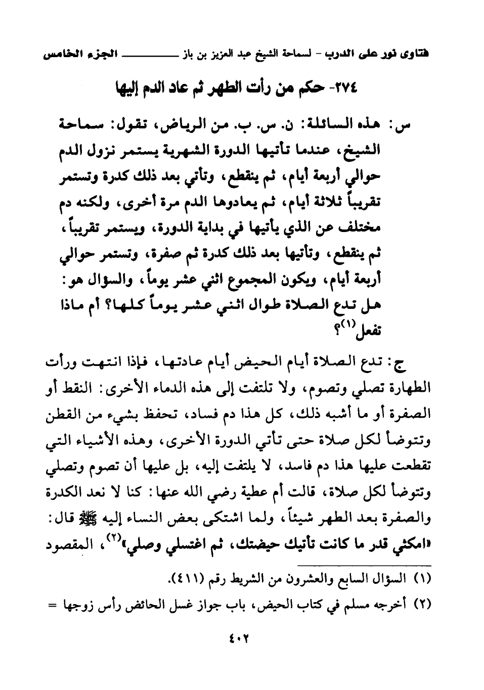 274 - حكم من رأت الطهر ثم عاد الدم إليها