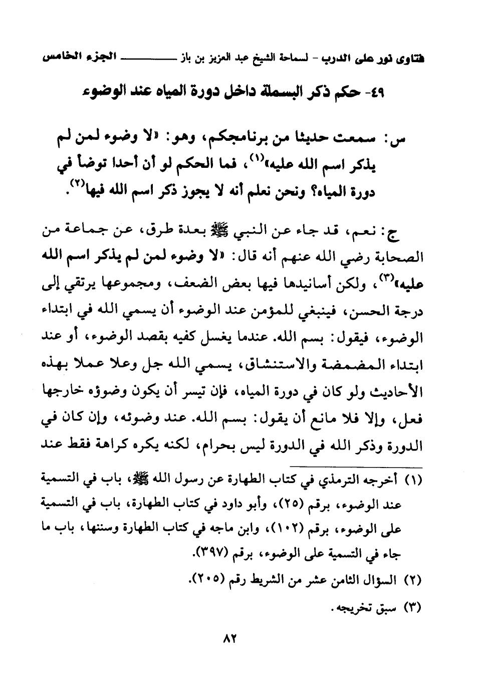 كتاب فتاوى نور على الدرب لابن باز بعناية الشويعر (اسم الجزء: 5)