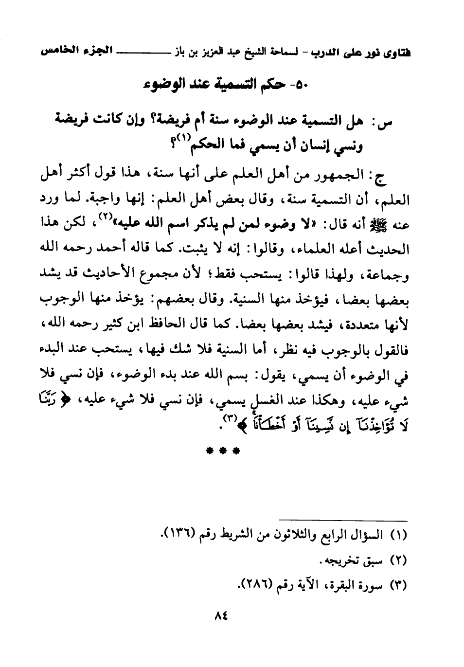 كتاب فتاوى نور على الدرب لابن باز بعناية الشويعر (اسم الجزء: 5)