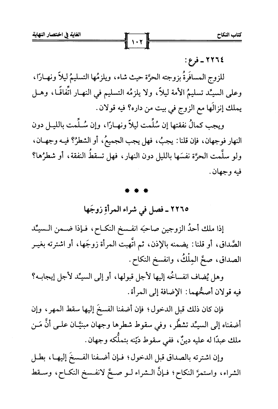ويجب كمالُ نفقتها إن سُلِّمت ليلأونهارًا، وإن سُلِّمت بالليل دون النهار فوجهان، فإن قلنا: يجبُ، فهل يجب الجميعُ، أو الشطرُ؟ فيه وجهان، ولو سلَّمت الحرَّة نفسَها بالليل دون النهار، فهل تسقطُ النفقة، أو شطرُها؟ فيه وجهان.
