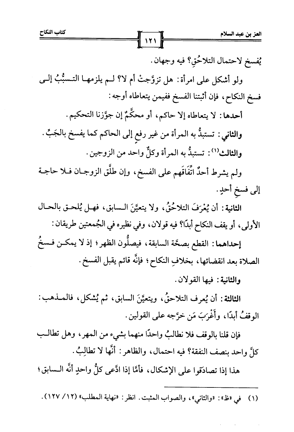 الثانية: أن يُعْرَفَ التلاحُقُ، ولا يتعيَّنَ السابق، فهل يُلحق بالحال الأولى، أو يقف النكاح أبدًا؟ فيه قولان، وفي نظيره في الجُمعتين طريقان: