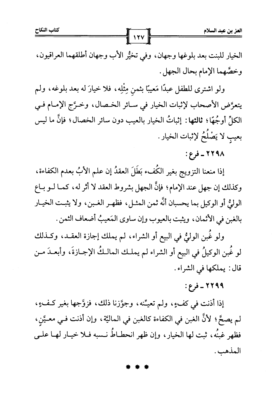 إذا منعنا التزويج بغير الكُفء بَطَلَ العقدُ إن علم الأبُ بعدم الكفاءة، وكذلك إن جهل عند الإِمام؛ فإنَّ الجهل بشروط العقد لا أثر له، كما لو باع الوليُّ أو الوكيل بما يحسبان أنَّه ثمن المثل، فظهر الغبن، ولا يثبت الخيار بالغبن في الأثمان، ويثبت بالعيوب وإن ساوى المَعيبُ أضعاف الثمن.