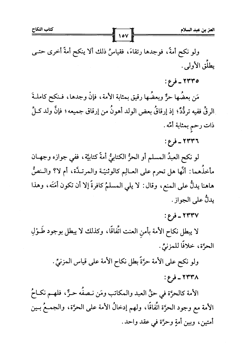 الأمة كالحرَّة في حقِّ العبد والمكاتب ومَن نصفُه حرٌّ، فلهم نكاحُ الأمة مع وجود الحرَّة اتِّفاقًا، ولهم إدخالُ الأمة على الحرَّة، والجمعُ بين أمتين، وبين أمةٍ وحرَّة في عقد واحد.