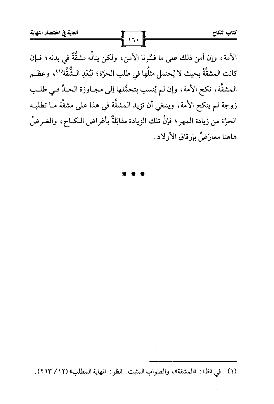 (¬1) في "ظ": "المشقة"، والصواب المثبت. انظر: "نهاية المطلب" (12/ 263).