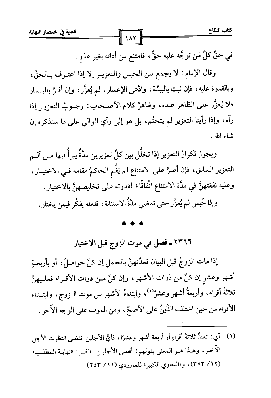 (¬1) أي: تعتدُّ ثلاثةَ أقراءٍ أو أربعة أشهر وعشرًا، فأيُّ الأجلين انقضى انتظرت الأجل الآخر، وهذا هو المعنى بقولهم: أقصى الأجلين. انظر: "نهاية المطلب" (12/ 353)، و"الحاوي الكبير" للماوردي (11/ 243).