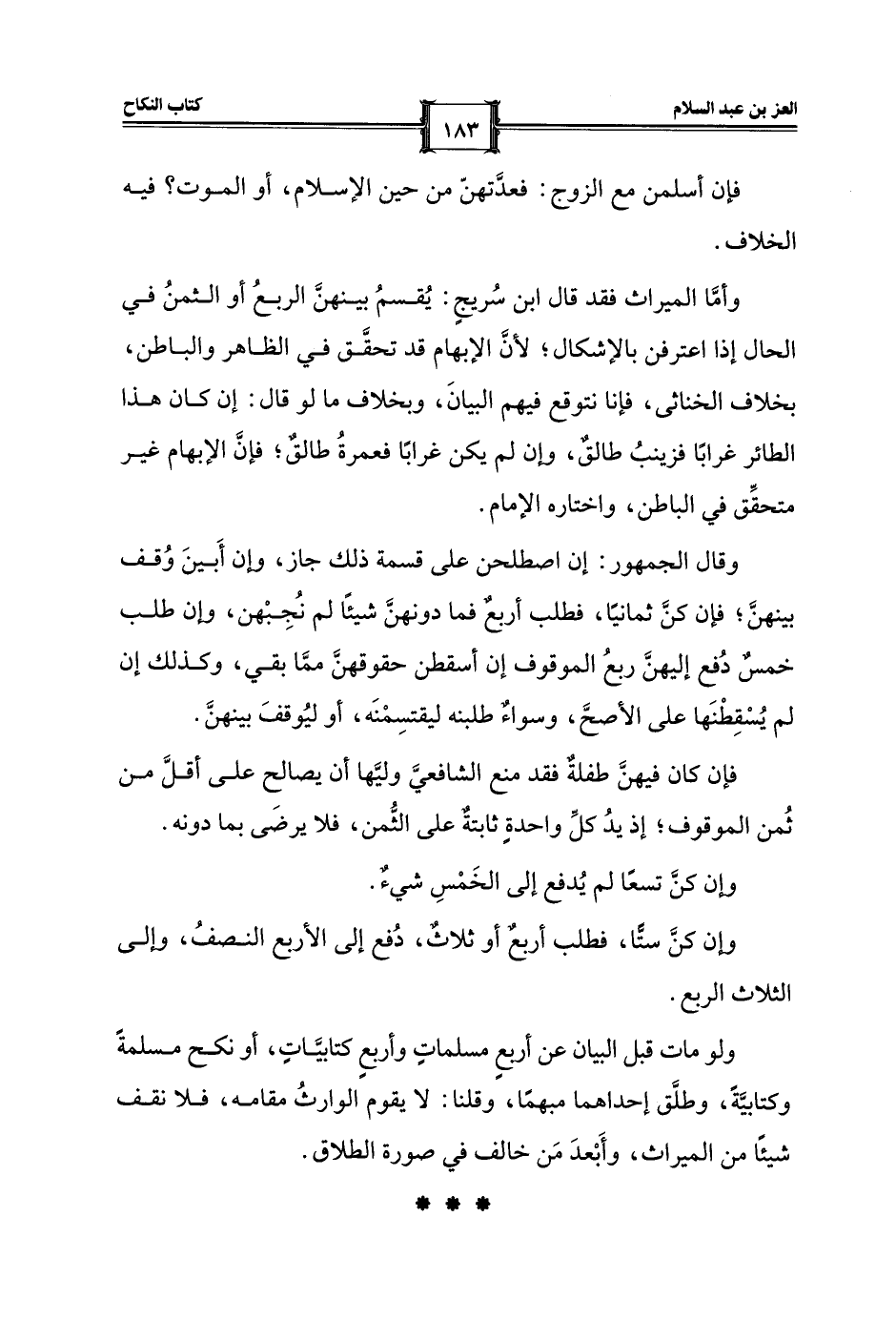 ولو مات قبل البيان عن أربعٍ مسلماتٍ وأربعٍ كتابيَّاتٍ، أو نكح مسلمةً وكتابيَّةً، وطلَّق إحداهما مبهمًا، وقلنا: لا يقوم الوارثُ مقامه، فلا نقف شيئًا من الميراث، وأَبْعدَ مَن خالف في صورة الطلاق.