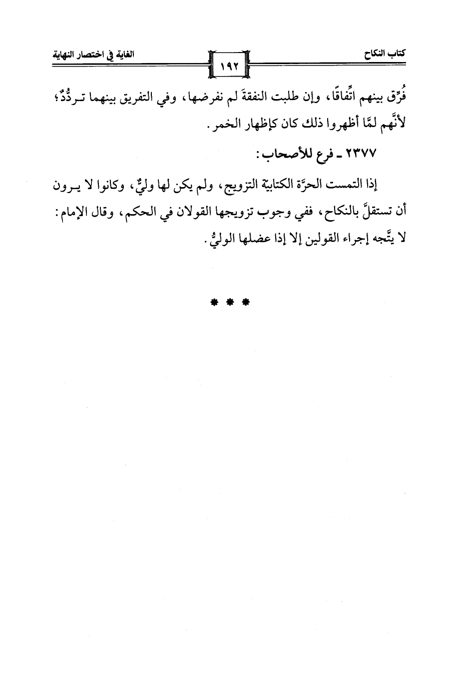 إذا التمست الحرَّة الكتابيّة التزويج، ولم يكن لها وليٌّ، وكانوا لا يرون أن تستقلَّ بالنكاح، ففي وجوب تزويجها القولان في الحكم، وقال الإمام: لا يتَّجه إجراء القولين إلا إذا عضلها الوليُّ.