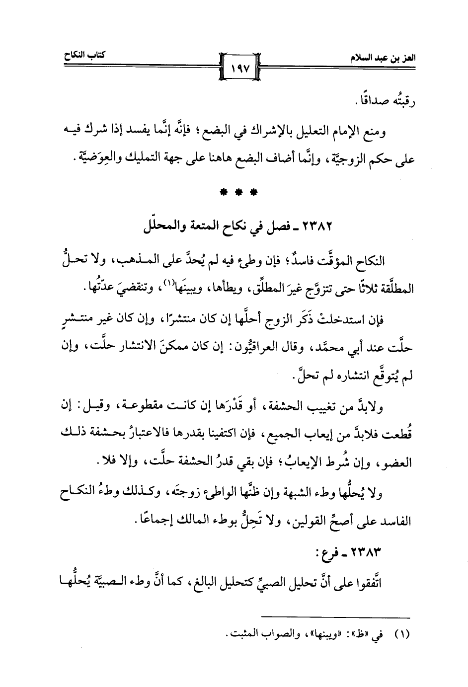 النكاح المؤقَّت فاسدٌ؛ فإن وطئ فيه لم يُحدَّ على المذهب، ولا تحلُّ المطلَّقة ثلاثًا حتى تتزوَّج غيرَ المطلِّق، ويطأها، ويبينَها (¬1)، وتنقضيَ عدّتُها.