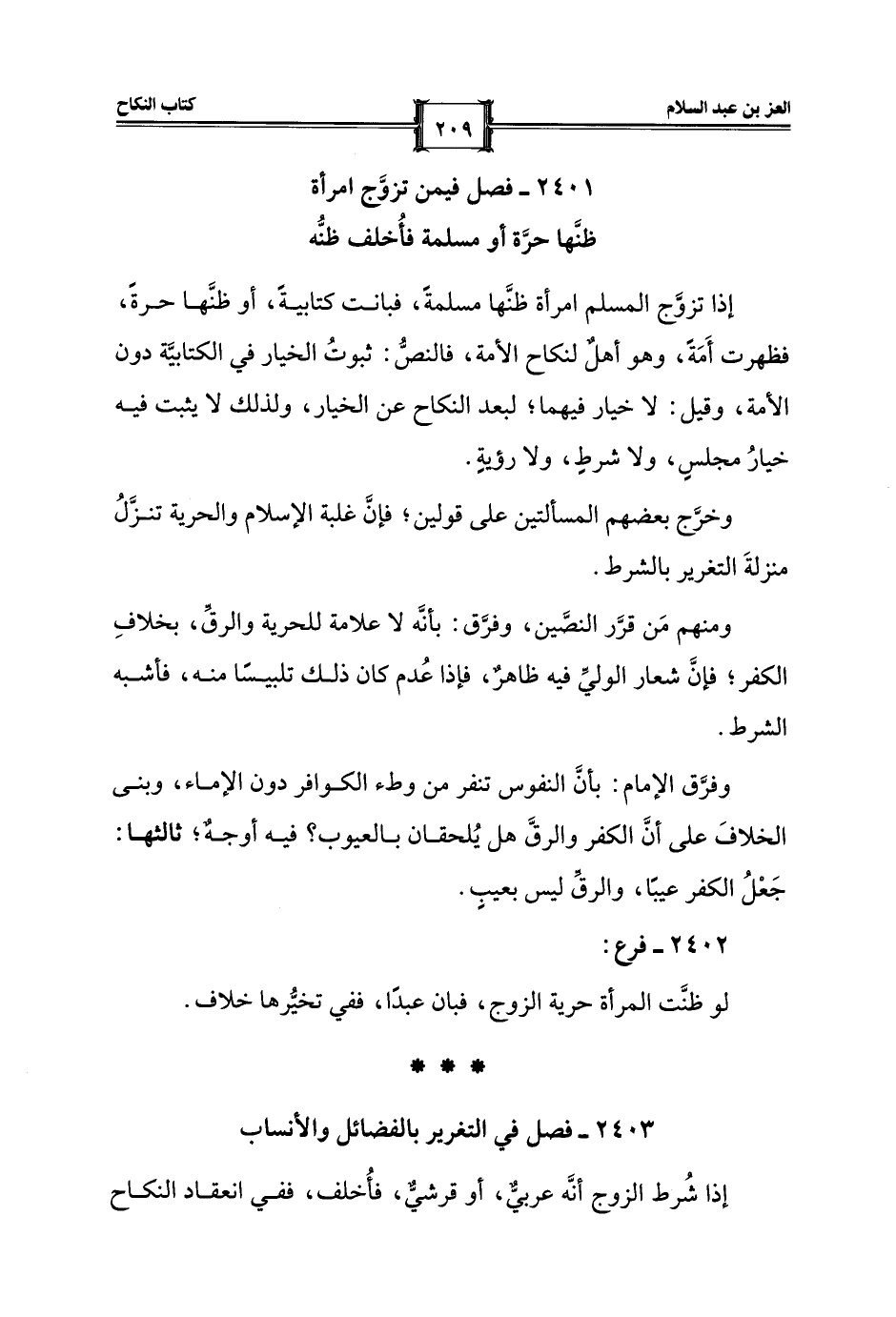 2401 - فصل فيمن تزوَّج امرأة ظنَّها حرَّة أو مسلمة فأُخلف ظنُّه
