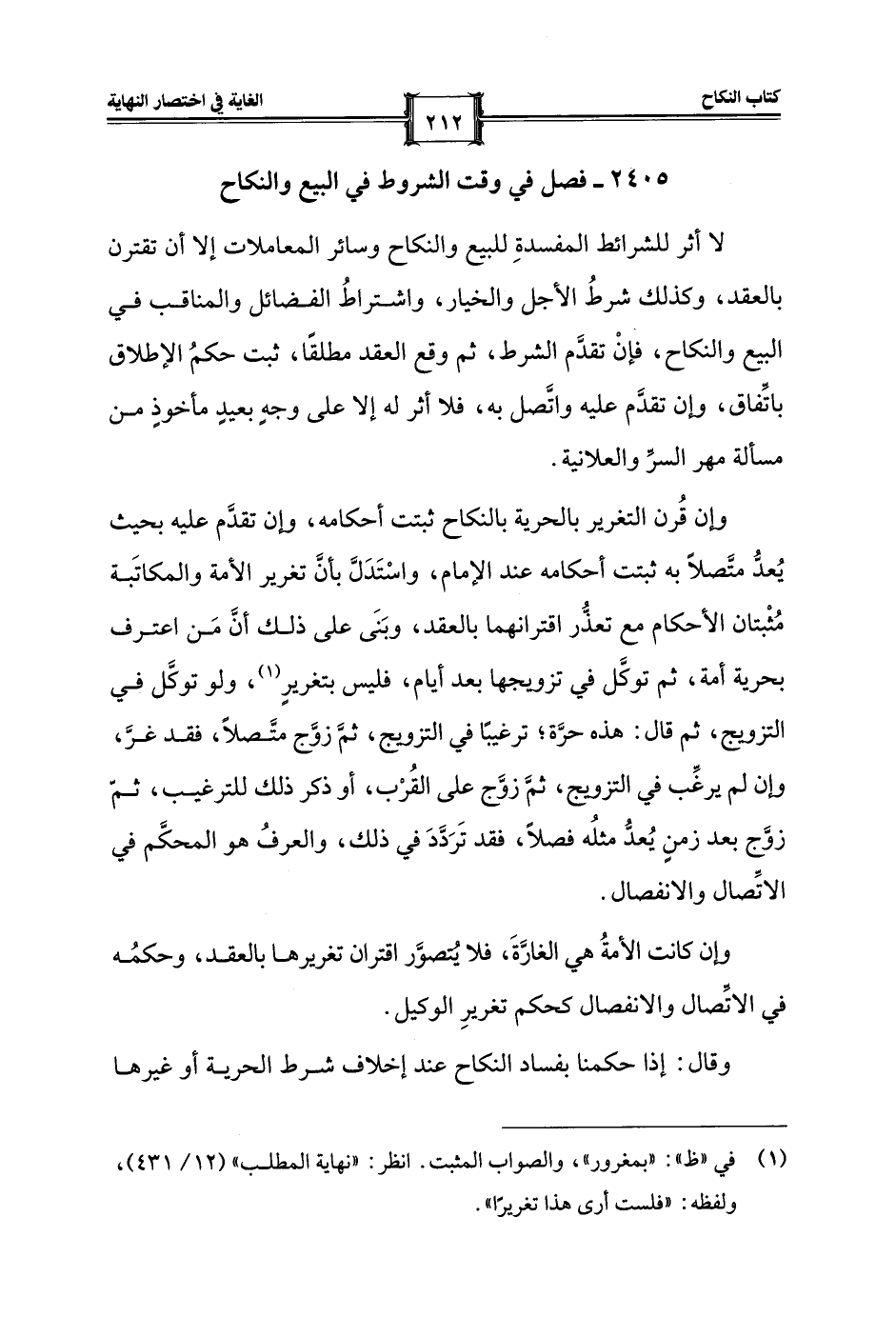 2405 - فصل في وقت الشروط في البيع والنكاح