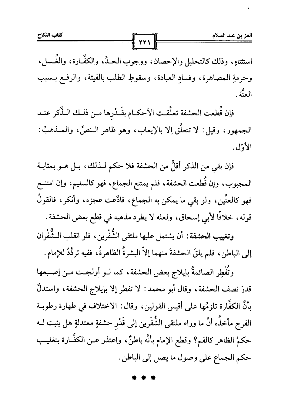 فإن قُطعت الحشفة تعلَّقت الأحكام بقَدْرِها من ذلك الذَّكر عند الجمهور، وقيل: لا تتعلَّق إلا بالإيعاب، وهو ظاهر النصِّ، والمذهبُ: الأوّل.