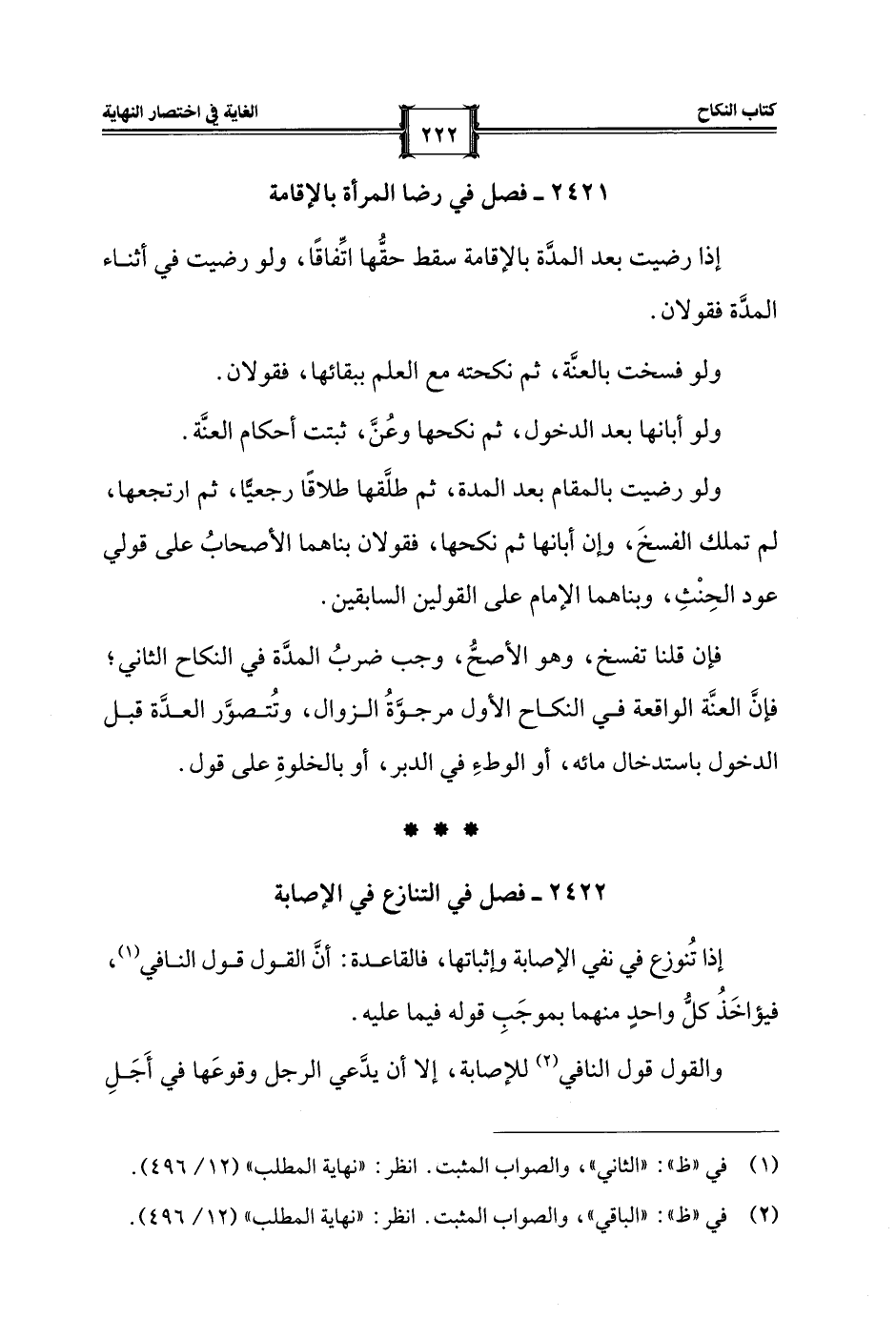 (¬2) في "ظ": "الباقي"، والصواب المثبت. انظر: "نهاية المطلب" (12/ 496).