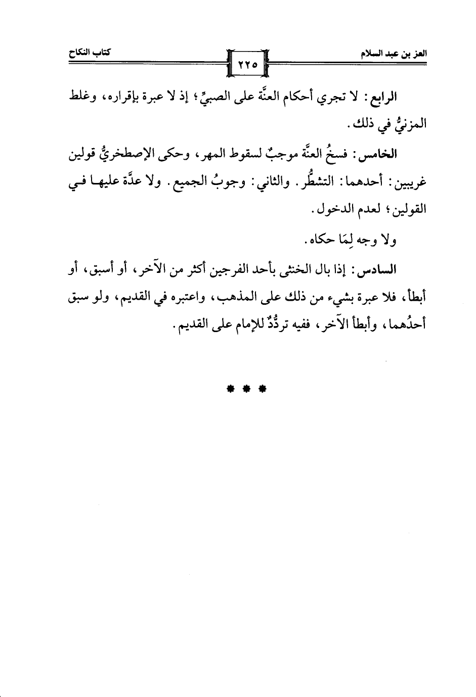 الرابع: لا تجري أحكام العنَّة على الصبيِّ؛ إذ لا عبرة بإقراره، وغلط المزنيُّ في ذلك.