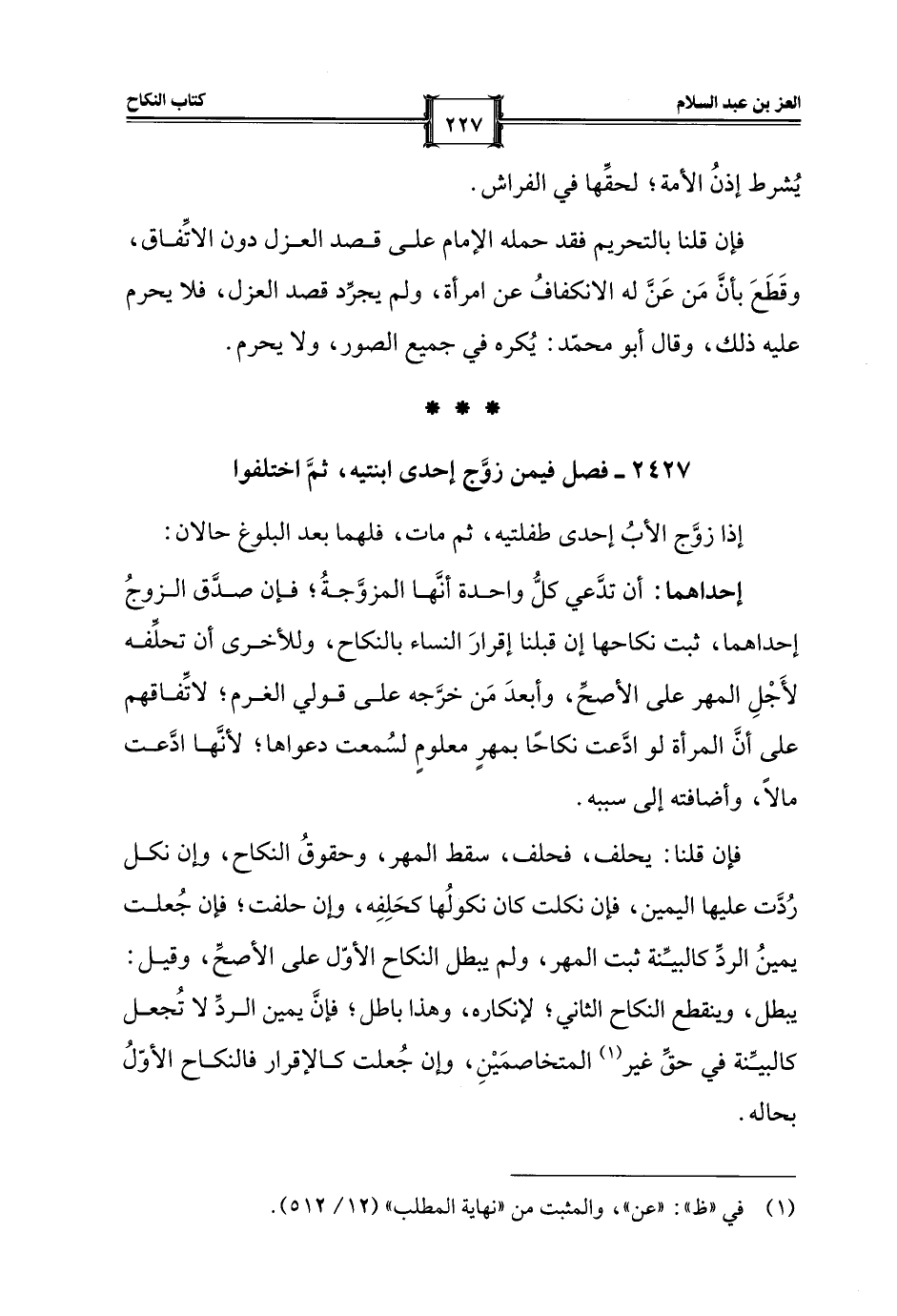 2427 - فصل فيمن زوَّج إحدى ابنتيه، ثمَّ اختلفوا