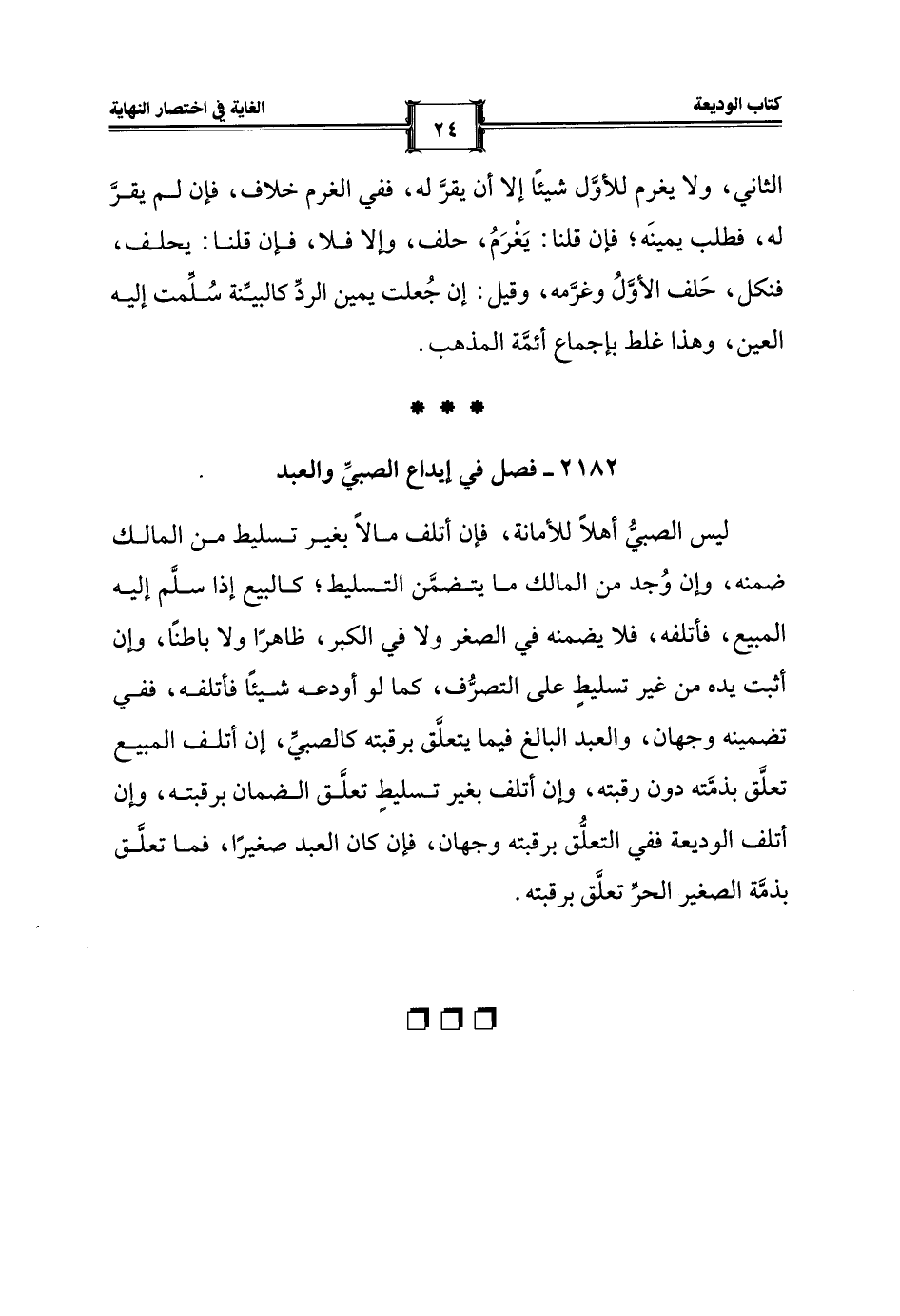 2182 - فصل في إيداع الصبيِّ والعبد