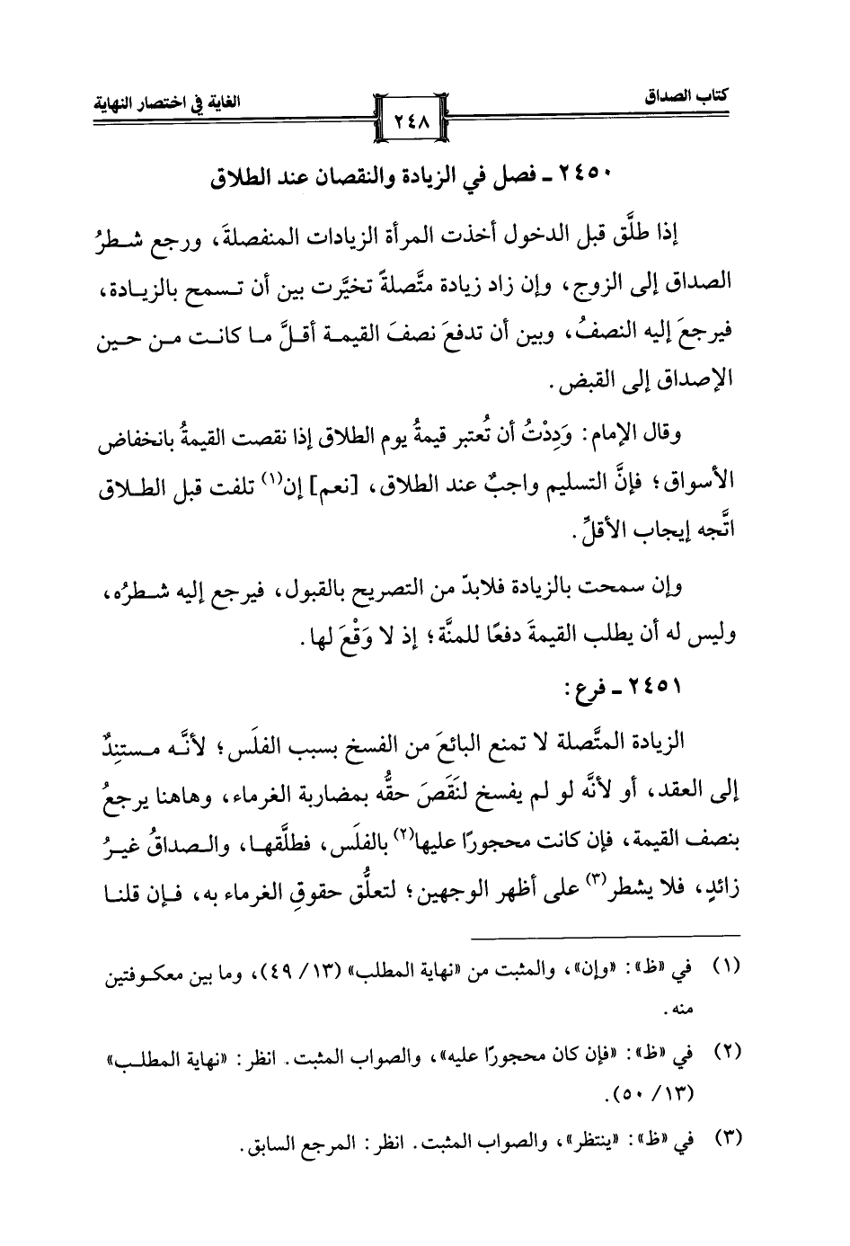 2450 - فصل في الزيادة والنقصان عند الطلاق
