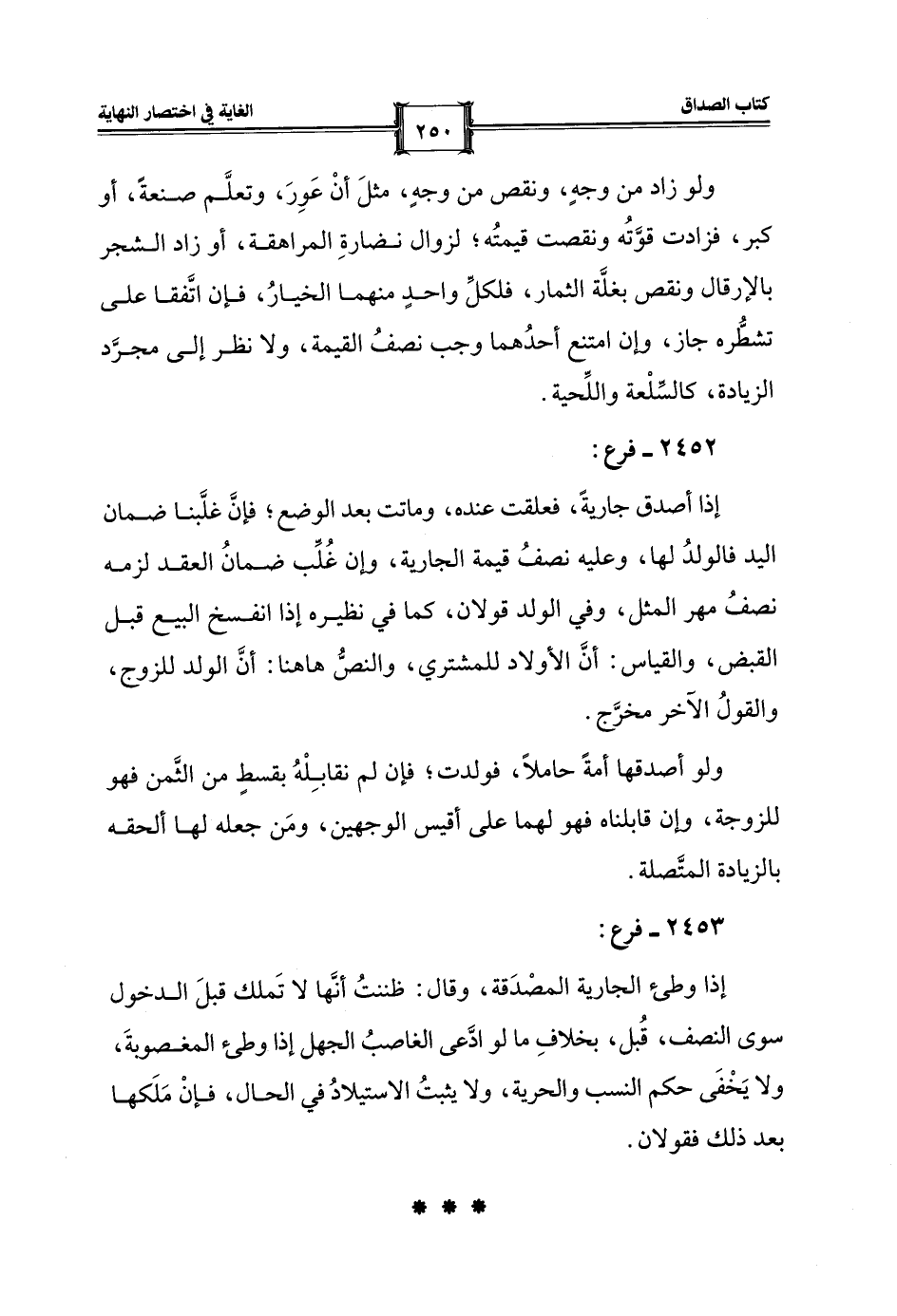 إذا وطئ الجارية المصْدَقة، وقال: ظننتُ أنَّها لا تَملك قبلَ الدخول سوى النصف، قُبل، بخلافِ ما لو ادَّعى الغاصبُ الجهل إذا وطئ المغصوبةَ، ولا يَخْفَى حكم النسب والحرية، ولا يثبتُ الاستيلادُ في الحال، فإنْ مَلَكها بعد ذلك فقولان.