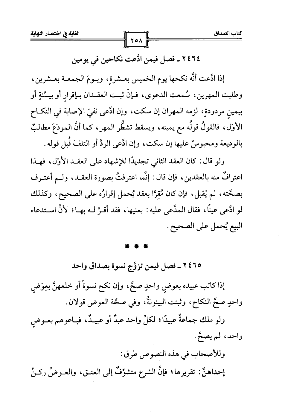 2464 - فصل فيمن ادَّعت نكاحين في يومين