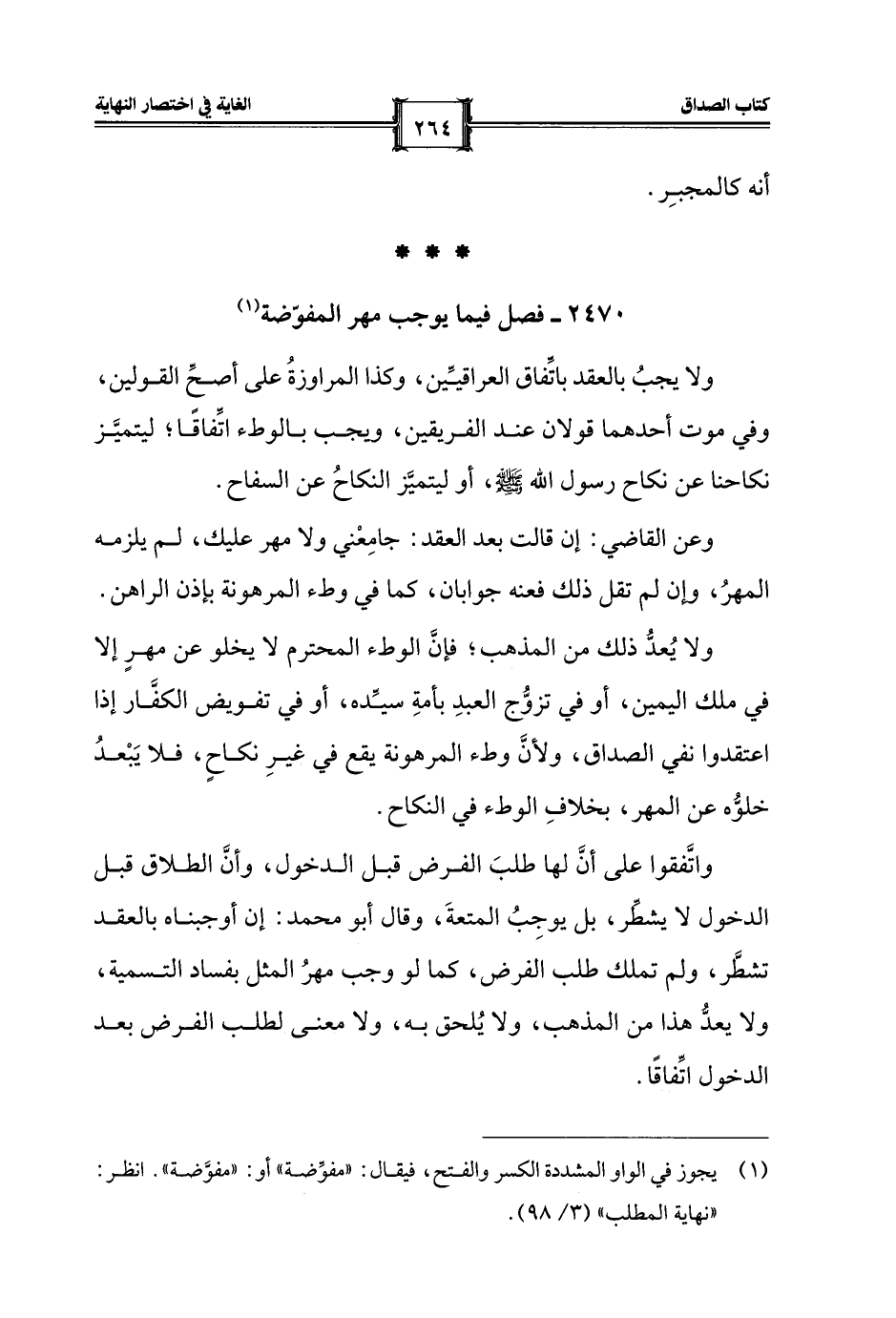 (¬1) يجوز في الواو المشددة الكسر والفتح، فيقال: "مفوِّضة" أو: "مفوَّضة". انظر: "نهاية المطلب" (3/ 98).