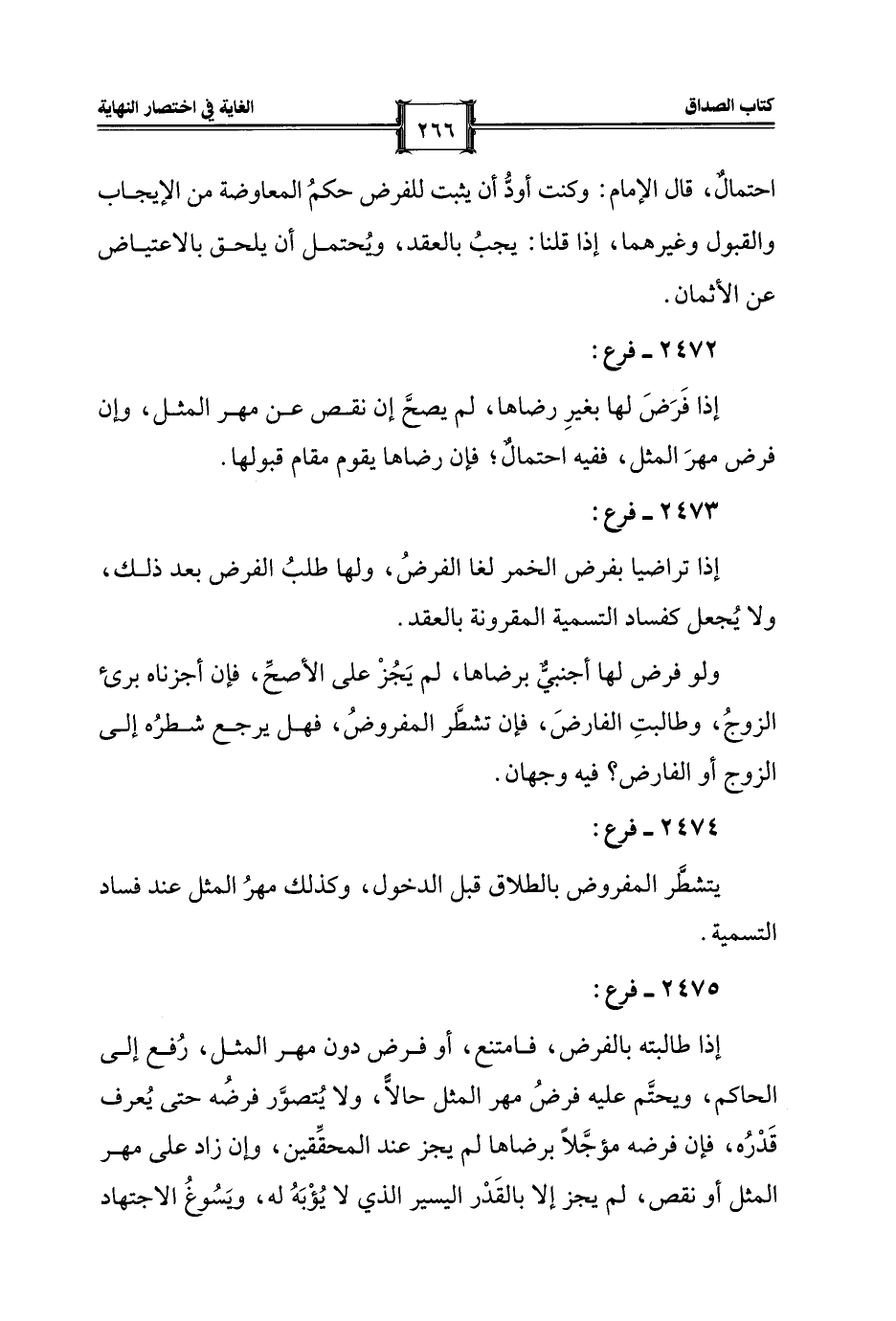 احتمالٌ، قال الإمام: وكنت أودُّ أن يثبت للفرض حكمُ المعاوضة من الإيجاب والقبول وغيرهما، إذا قلنا: يجبُ بالعقد، ويُحتمل أن يلحق بالاعتياض عن الأثمان.