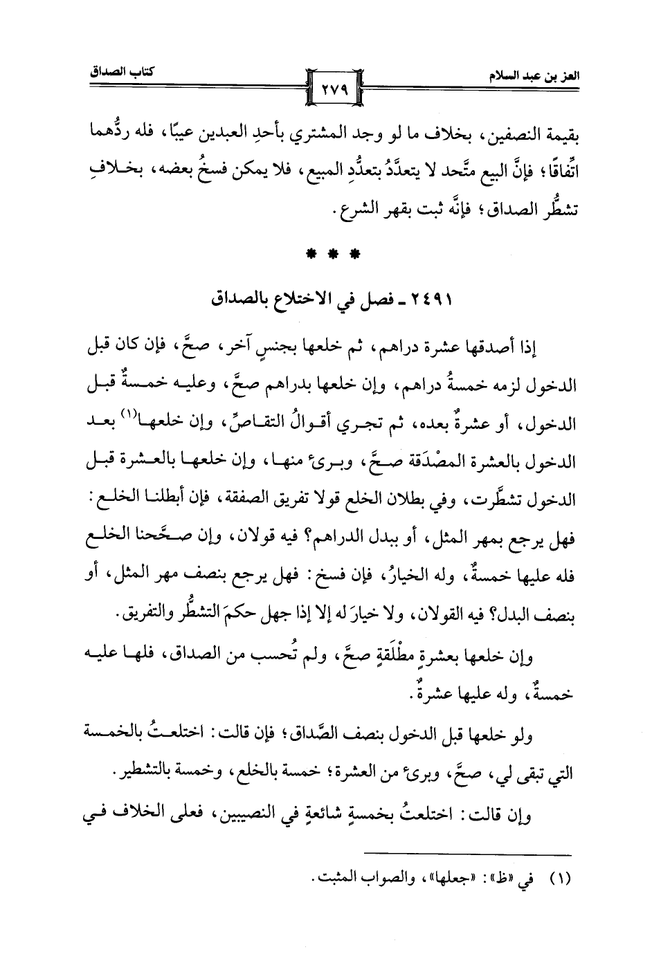 2491 - فصل في الاختلاع بالصداق