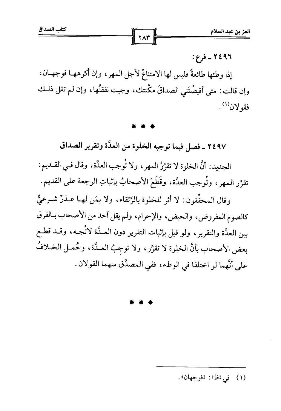 2497 - فصل فيما توجبه الخلوة من العدَّة وتقرير الصداق