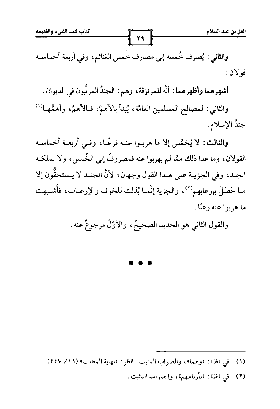 والثاني: لمصالح المسلمين العامَّة، يُبدأ بالأهمِّ، فالأهمِّ، وأهمُّها (¬1) جندُ الإسلام.