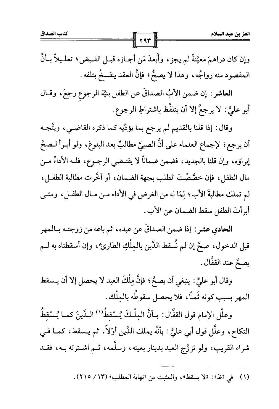 (¬1) في "ظ": "لا يسقط"، والمثبت من "نهاية المطلب" (13/ 215).
