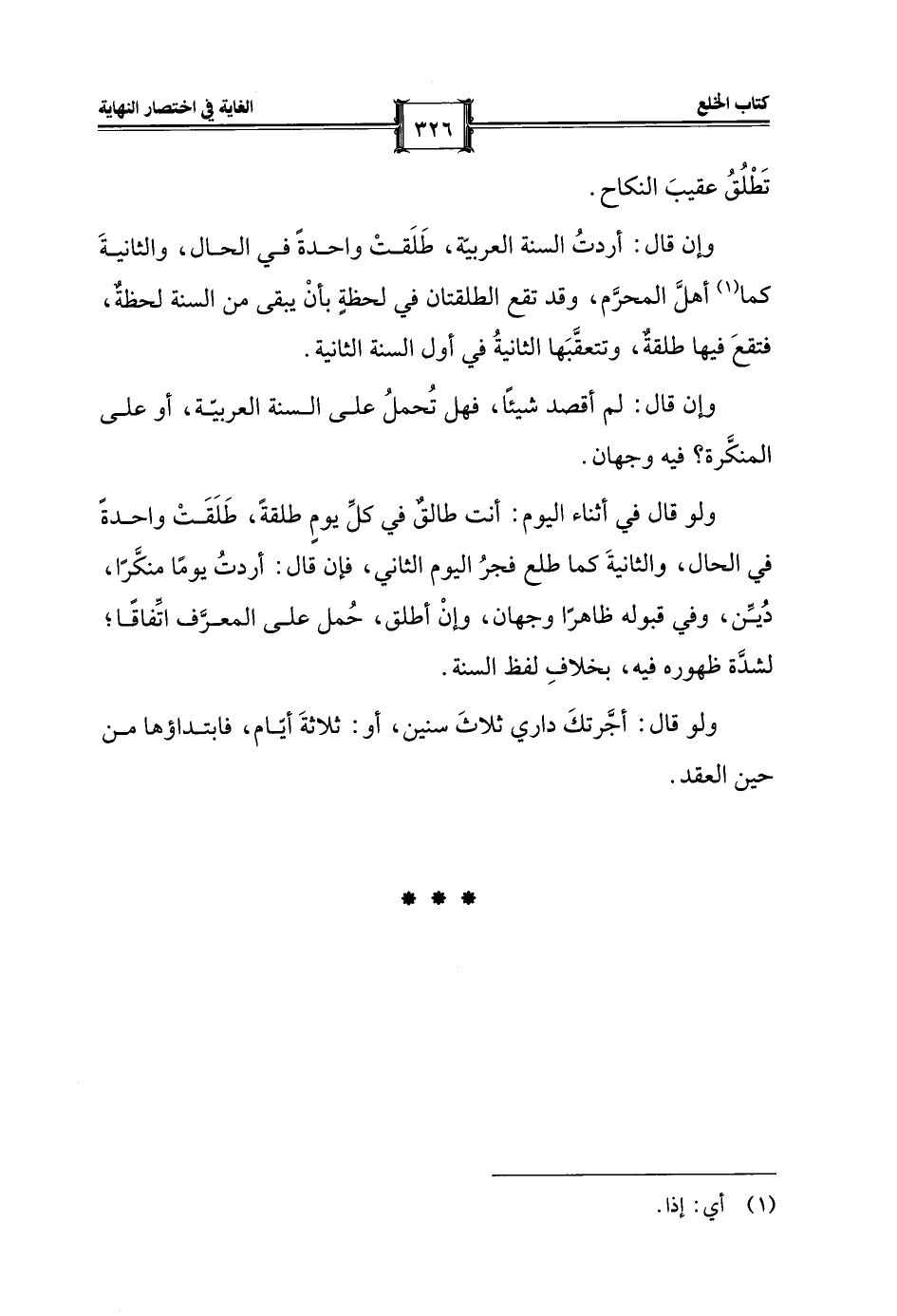 وإن قال: لم أقصد شيئًا، فهل تُحملُ على السنة العربيّة، أو على المنكَّرة؟ فيه وجهان.