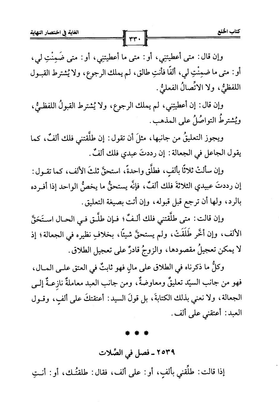 ويجوز التعليقُ من جانبها، مثلَ أن تقول: إن طلَّقتني فلك ألفٌ، كما يقول الجاعل في الجعالة: إن رددتَ عبدي فلك ألفٌ.