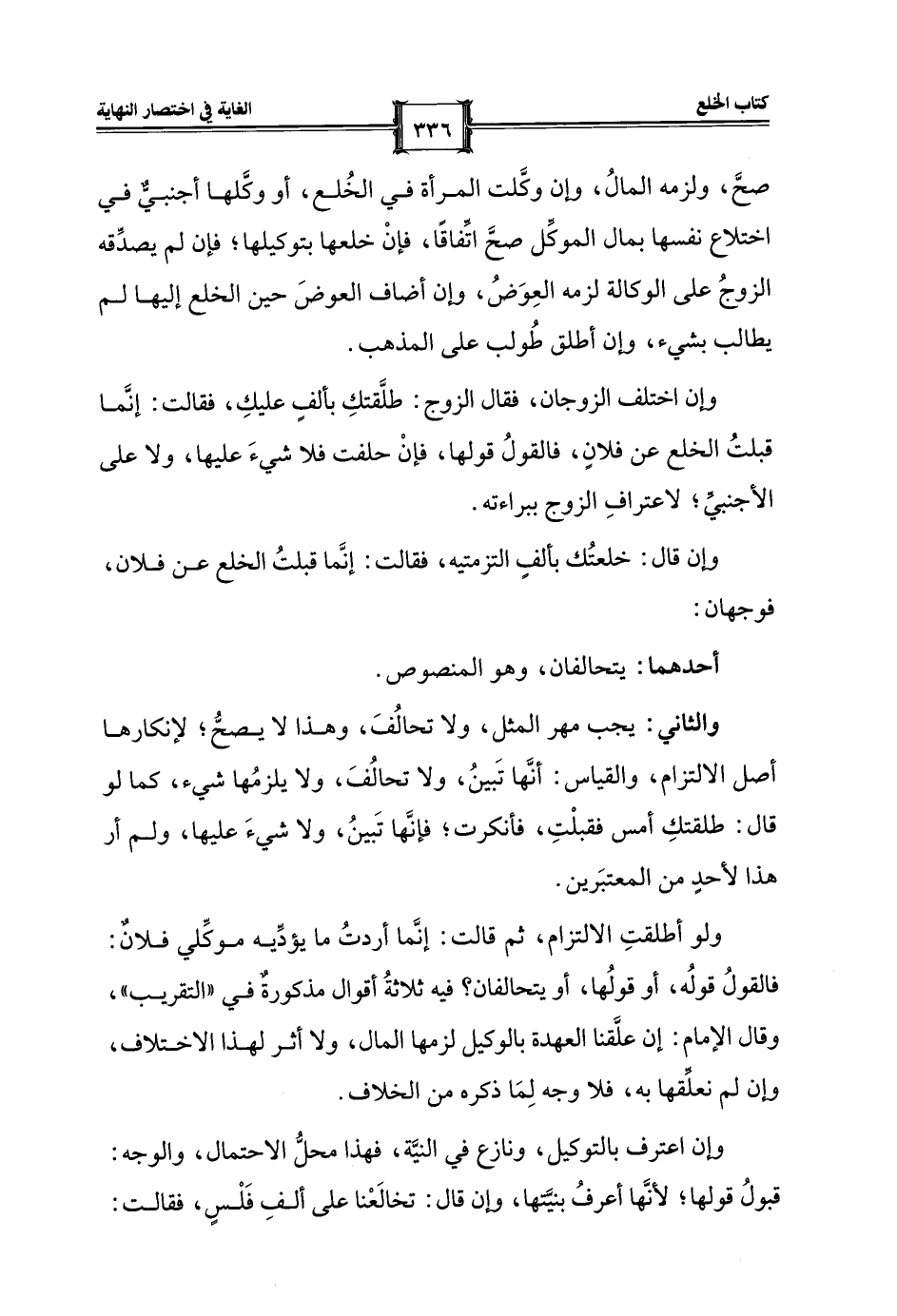 وإن اعترف بالتوكيل، ونازع في النيَّة، فهذا محلُّ الاحتمال، والوجه: قبولُ قولها؛ لأنَّها أعرفُ بنيَّتها، وإن قال: تخالَعْنا على ألفِ فَلْسٍ، فقالت: