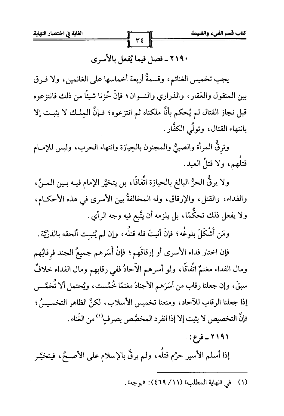 فإن اختار فداء الأسرى أو إرقاقَهم؛ فإنْ أَسَرهم جميعُ الجند فرِقابُهم ومال الفداء مغنمٌ اتِّفاقًا، ولو أسرهم الآحادُ ففي رقابهم ومال الفداء خلافٌ سبقَ، وإن جعلنا رقاب من أسَرَهم الأجنادُ مغنمًا خُمِّست، ويُحتمل ألا تُخمَّس إذا جعلنا الرقاب للآحاد، ومنعنا تخميس الأسلاب، لكنَّ الظاهر التخميسُ؛ فإنَّ التخصيص لا يثبت إلا إذا انفرد المخصَّص بصرفٍ (¬1) من الغَناء.