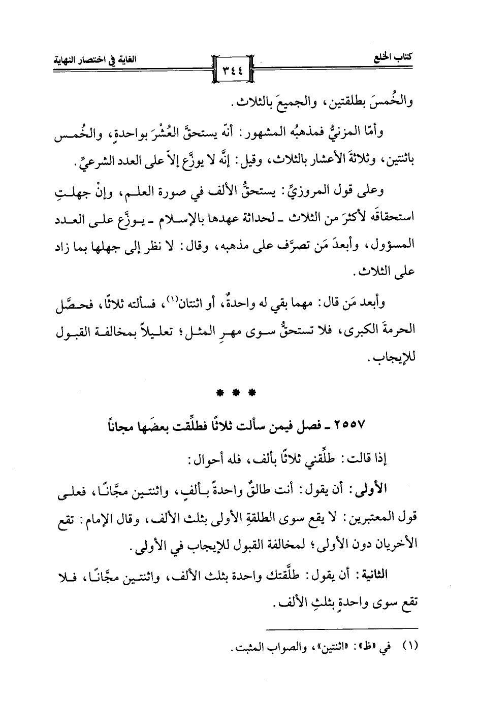 الثانية: أن يقول: طلَّقتك واحدة بثلث الألف، واثنتين مجَّانًا، فلا تقع سوى واحدةٍ بثلثِ الألف.