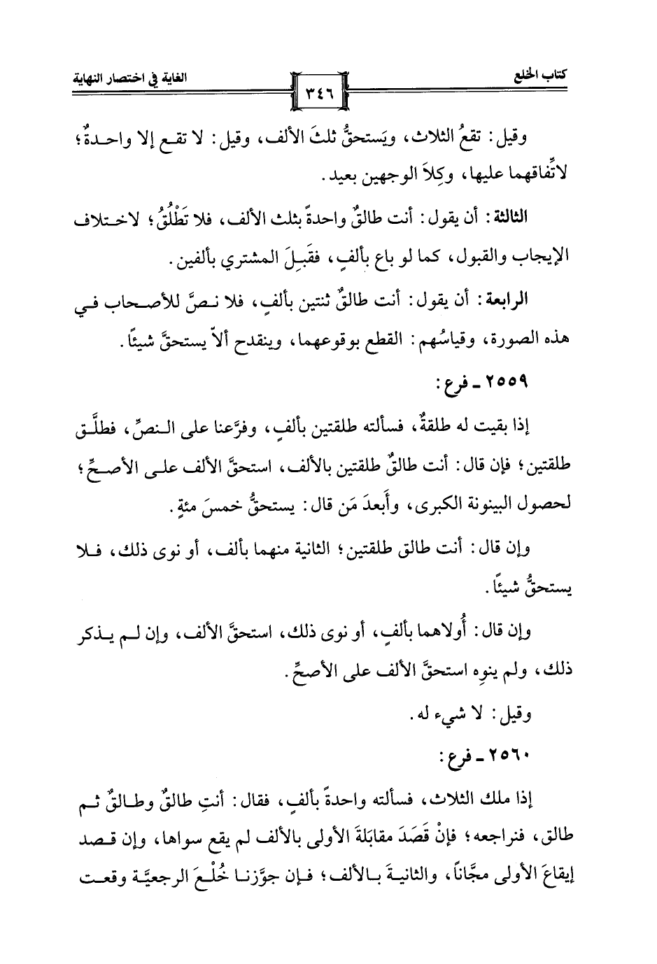 الثالثة: أن يقول: أنت طالقٌ واحدةً بثلث الألف، فلا تَطْلُقُ؛ لاختلاف الإيجاب والقبول، كما لو باع بألفٍ، فقَبِلَ المشتري بألفين.
