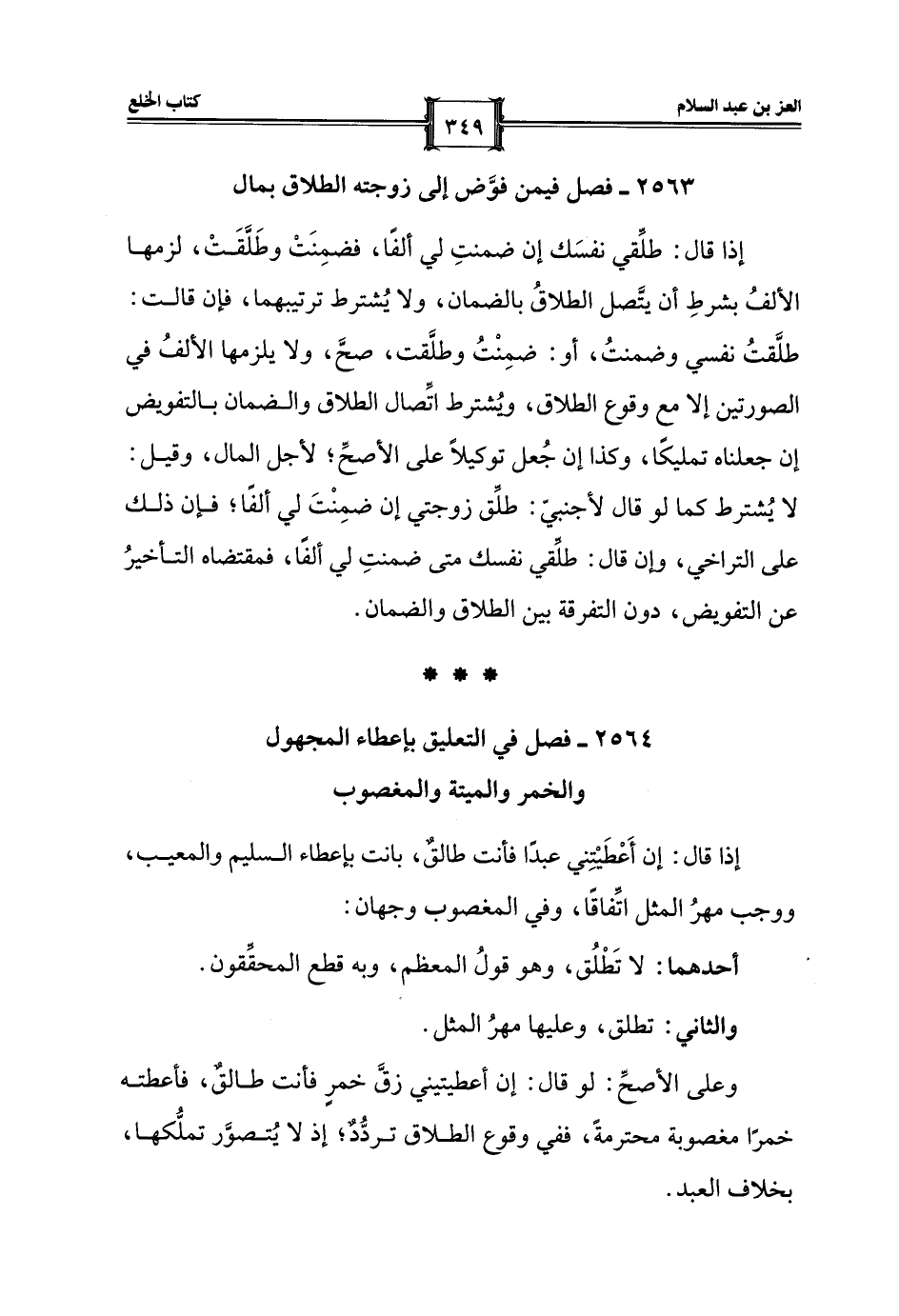 2564 - فصل في التعليق بإعطاء المجهول والخمر والميتة والمغصوب