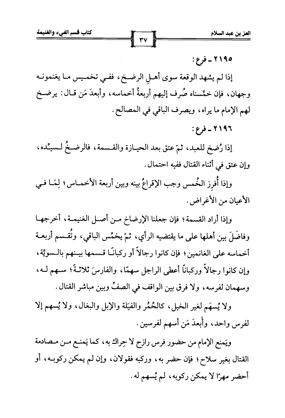 وإذا أراد القسمة؛ فإن جعلنا الإرضاخ من أصل الغنيمة، أخرجها وفاضَلَ بين أهلها على ما يقتضيه الرأي، ثمّ يخمِّس الباقي، وتُقسم أربعة أخماسه على الغانمين؛ فإن كانوا رجالًا أو ركبانًا قسمها بينهم بالسويَّة، وإن كانوا رجالًا وركبانًا أعطى الراجل سهمًا، والفارسَ ثلاثةً؛ سهم له، وسهمان لفرسه، ولا فرق بين الواقف في الصفِّ وبين مباشر القتال.