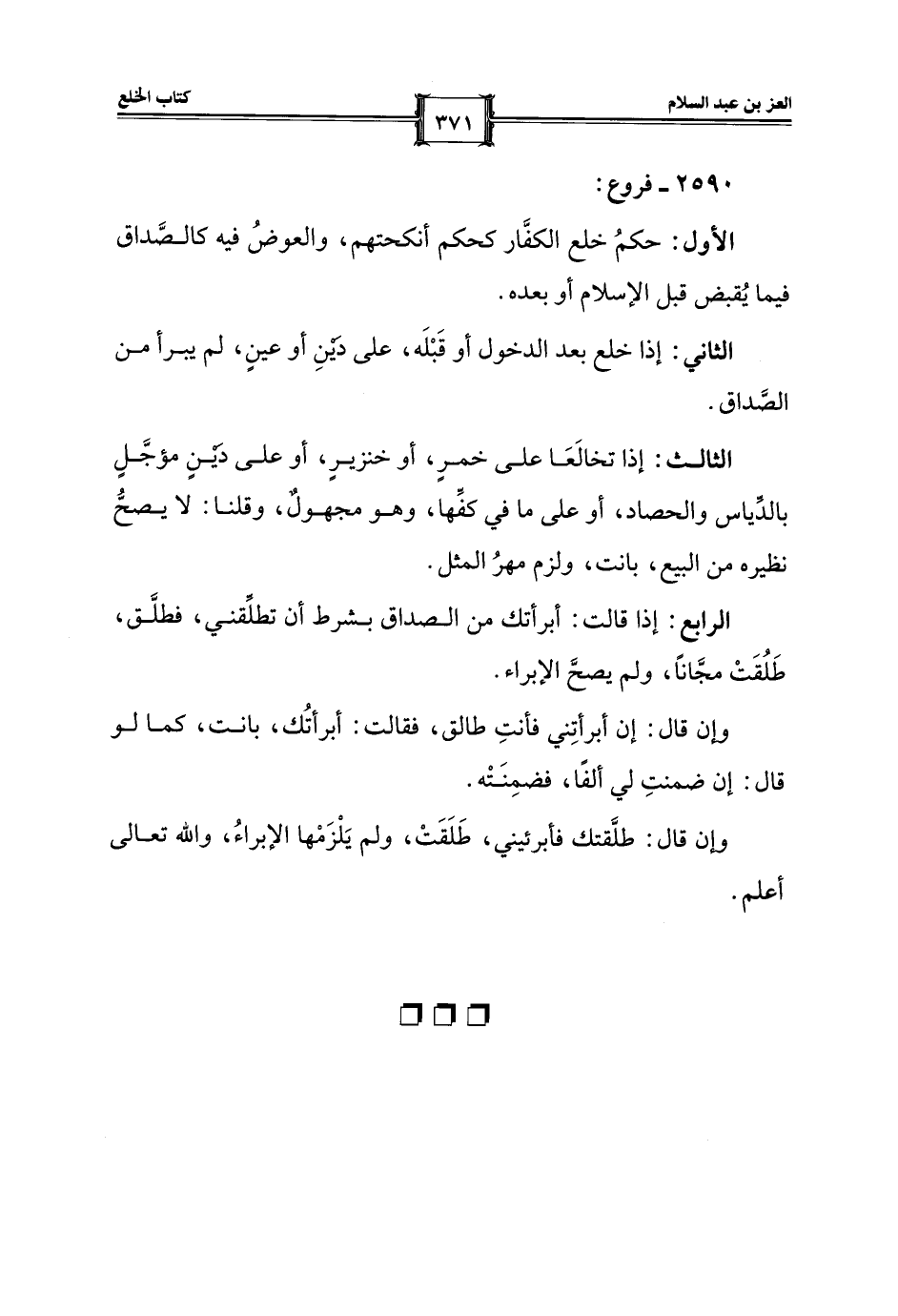 الأول: حكمُ خلع الكفَّار كحكم أنكحتهم، والعوضُ فيه كالصَّداق فيما يُقبض قبل الإسلام أو بعده.