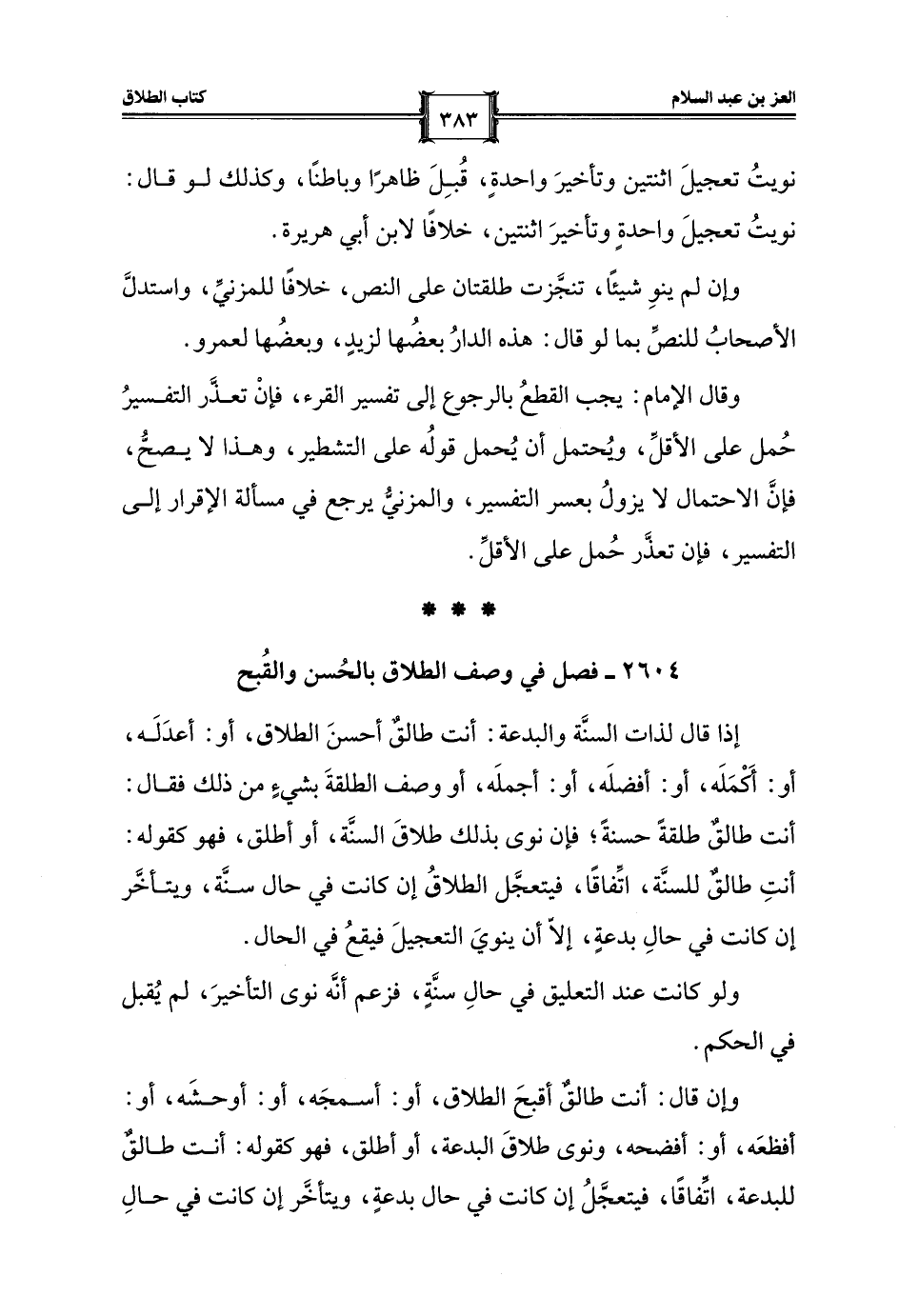 2604 - فصل في وصف الطلاق بالحُسن والقُبح